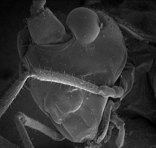 スズムシの頭部の顕微鏡写真です。カマキリのような逆三角形が特徴です。