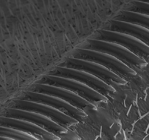 このページで紹介している画像は「走査型電子顕微鏡画像資料集」の阿達直樹氏から提供して頂きました。スズムシ以外の画像も多数有るので興味のある方は是非訪問してみて下さい。