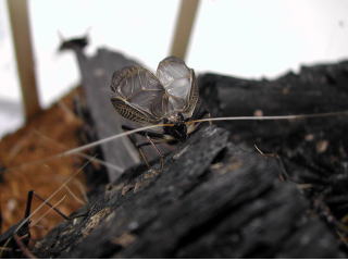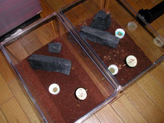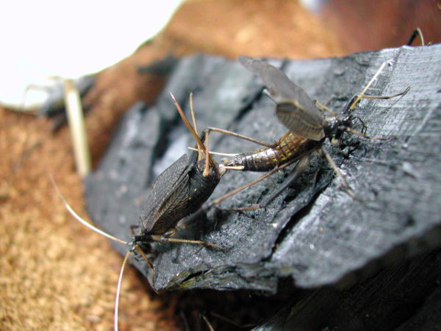 天気:晴 室温:29.5℃先日、上田さんから頂いたメスのスズムシをオスと一緒に新居に入れました。入れた早々オスのアプローチが始まり、同時に交尾もすぐに始まりました。掲示板にも書いてありましたが、オスと一緒にメスも翅をパタパタ動かしているのも確認出来ました。8月も下旬になり我が家のスズムシ達は産卵ラッシュになりそうです。